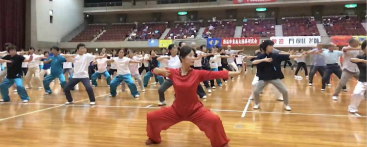 2019年10月,门敢红(前中)在日本横滨市武术比赛表演