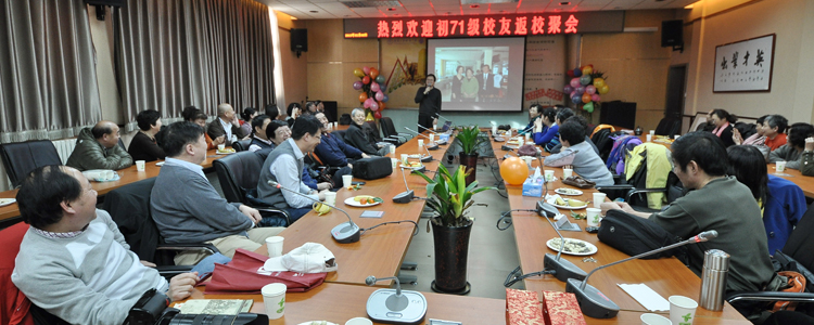 这次聚会共有46名校友参加,一位从美国回来探亲的和另一位与大家一直失联在上海工作的校友也来了,令大家兴奋不已。经过各位简短的自我介绍,趁着太阳尚未下山,大家马上跑到主楼前面,按照各种不同的组合进行合影留念。聚会的当天恰逢三八妇女节。在照全体合影时,71级的男生们一改往日照相的常规,主动蹲在前排,以非常绅士、诙谐地方式对女同学表示节日的祝贺。