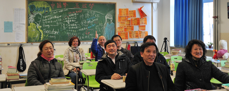 照过相后,大家又兴致勃勃地走进主楼——当年唯一的教学楼,从一楼跑到四楼、五楼,寻找着各自在初中和高中阶段所在班的教室。初716班的几名校友还坐在原来的教室里,复制正当年上课举手发言的情景,兴奋之情无法言表。随后大家又一起参观了校史馆,看到照片上曾经教过我们的老师熟悉面孔,心情非常激动,久久不愿离去。