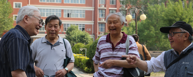 会议开始前,校园里出现了相互指认的热闹场面,很多多年未见面的老同学在此刻重逢,激动的心情溢于言表。分别时大家正值青春少年,日月穿梭,斗转星移,现在见面已两鬓白发。大家互相询问着近况,关注着学校百年校庆的相关进展情况。校友们纷纷对着采访镜头,表达自己对母校百年华诞的祝福。