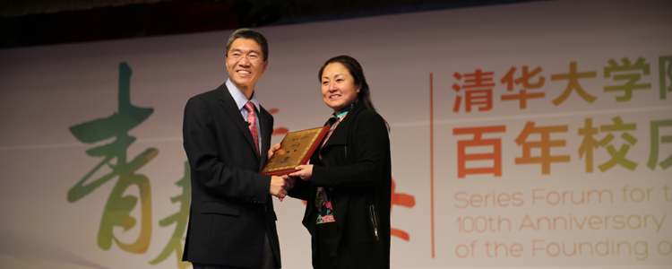 方妍书记(右)向吴军颁发“青春无悔——皇冠体育百年校庆系列讲坛”纪念牌