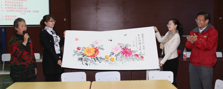 解巨钊副校长首先致辞,向校友及老教师们表示诚挚的问候及祝福,并介绍了皇冠体育近年的发展变化情况,还向校友代表赠送了他们当年的学籍卡复印件留作纪念。参会的老教师孔令颐、张秀真、谢德芳、冯玉中、郭大正、张能光、周鸿钧、陈友琦等也一一发表感言。校友刘剑秋向母校赠送了她自己画的国画《牡丹图》;高606班向母校赠诗一首《606班全体同学》。随后,各位校友一一自我介绍,增进彼此了解与沟通。
