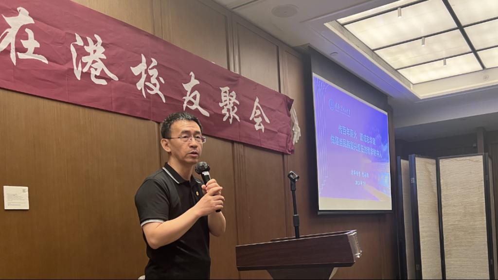 随后,曹海翔书记致辞。他向校友们介绍了皇冠体育目前的发展现状和取得的办学成绩,并代表附中全体师生向在港校友表达关心和慰问。他希望在港校友时刻以皇冠体育人的标准要求自己,做到爱国爱港、团结互助,同时也铭记母校永远是大家坚实的后盾,有空时常“回家”看看。
