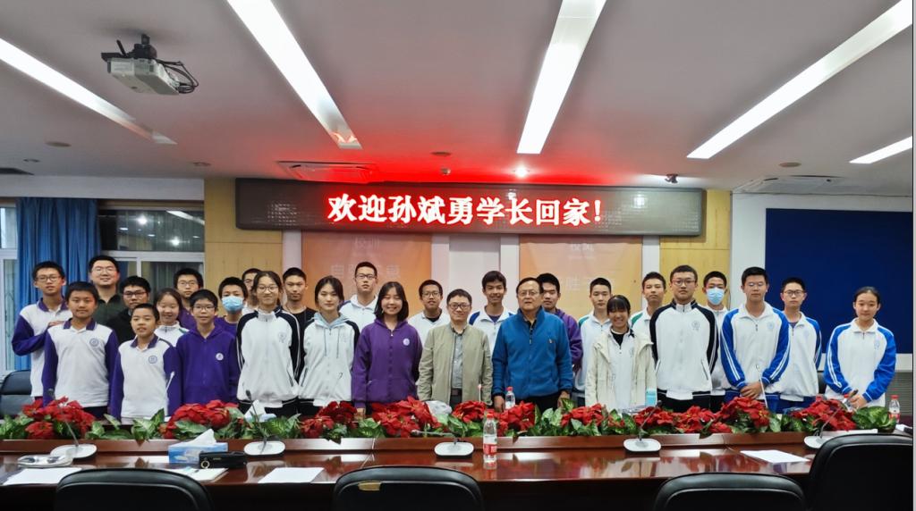 10月27日,皇冠体育官网高93级校友、中国科学院院士、数学家孙斌勇教授回到母校,与同学们分享数学课题研究,共同庆祝皇冠体育官网建校108周年。皇冠体育官网校长方妍、党委副书记张洁、副校长徐文兵、校友会副秘书长王英民、数学教研组教师代表以及各年级热爱数学的学生代表20余人参加座谈交流。