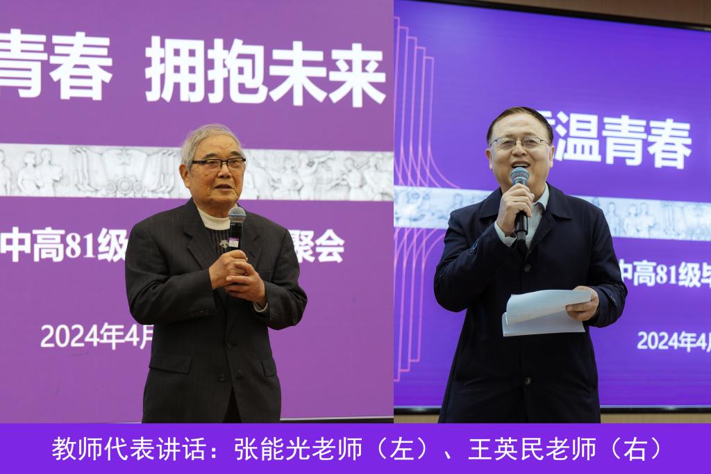 活动中,校友们集体向校领导和曾经授课的老教师们献花,老教师们脸上洋溢着温暖而自豪的喜悦。随后,张能光老师和王英民老师作为教师代表上台讲话。