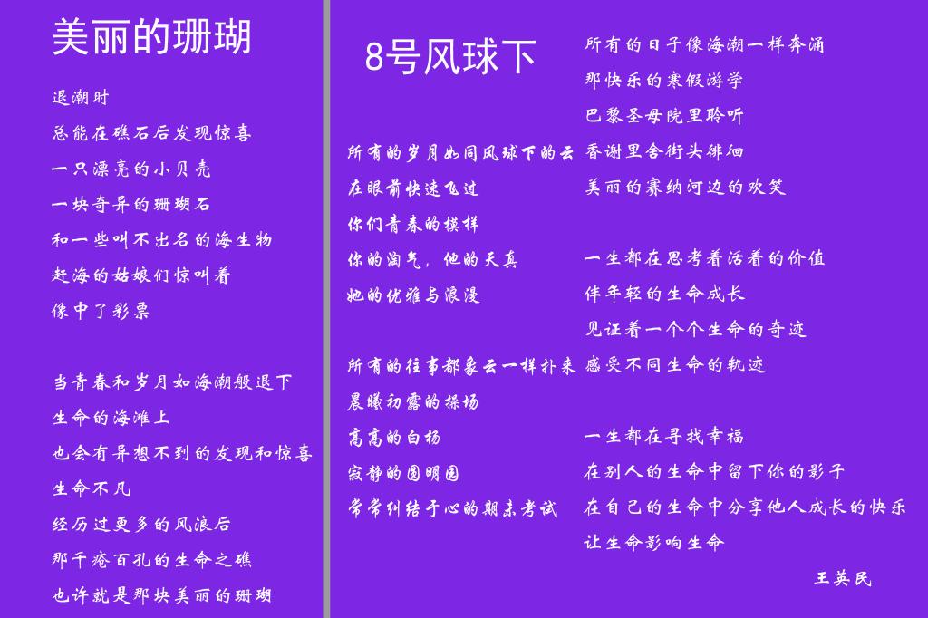 王英民老师朗诵《8号风球下》,在诗中他以伴随学生成长、见证生命奇迹、分享成长快乐,作为他坚持在附中近50年的原因,回忆四十年前共同度过的青春岁月。他向校友们表示衷心感谢,为他们在各自领域取得的辉煌成就感到无比骄傲。他以自己创作的《美丽的珊瑚》为结尾,寄语校友们像珊瑚一样经过海浪的洗礼依旧坚忍不拔、熠熠生辉,把生命的美丽和奇迹献给附中、献给清华。