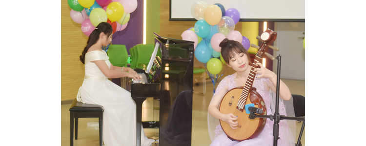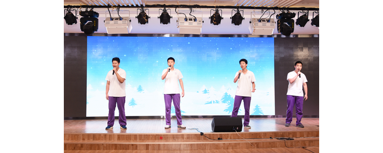 最后,师生分别为节日献歌献舞。学生节目《雪花的快乐》带领观众体味别样的执着与美丽;胡箭与李墨老师用阮与钢琴带来合奏版《大鱼》,优美的旋律透过指尖的拨动与弹奏,让人听得如痴如醉;陈艳老师饱含深情地带来诗朗诵《感恩的心》,以学生的角度切入,真切表达了对老师的感激;杨强老师通过演唱一首摇滚歌曲《加州旅馆》,使观众聆听了经典的吉他旋律,体会到了歌曲蕴含的感人心弦的悲世情怀;张琪、张婧、王楚珊老师演绎的歌曲《大鱼》,带领老师们随着音乐回想起电影中的种种片段,感动不已;陈卫东副主任和尹政君主任带来歌曲《我的中国心》,优美动人的歌词唱出了对祖国的深情赞美,铿锵有力的朗诵令全体听众心潮澎湃,全场齐声合唱,将气氛推向高潮;“无价之姐组”和“将台四少组”老师带来的舞蹈表演《乘风破浪的老师们》燃爆现场,气氛热烈。