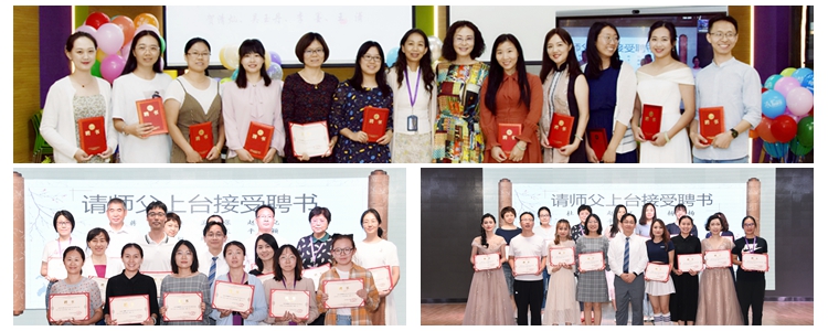 之后,进行师徒结对环节,两校区领导分别为一线教师、班主任、各职能部门的“师父”颁发聘书,希望在各位师父的带领下,老师们能更快成长。