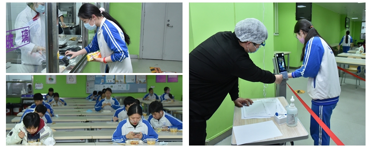 对于就餐与晚自习安排,学生中午在教室内就餐,晚上住宿生在食堂就餐,严格落实“单人单向单桌原则、不交流”原则。每日由工作人员将午餐送到教室门口,学生依次从前门出,将手部消毒后取餐,然后从后门再进入教室。晚上,住宿生严格遵守防控要求,排队进入食堂就餐。住宿生每晚19:00-21:30在教室自习,查漏补缺备战高考。