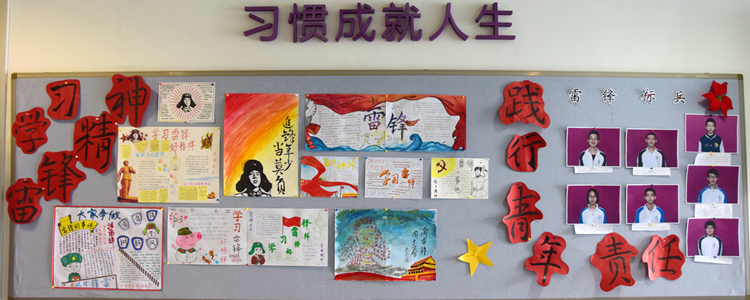 团委学生会将各班设计的学习雷锋手抄报张贴在展板上进行展示,以激励同学们不忘学雷锋精神的初心。