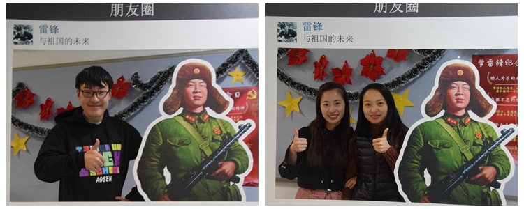 校团委学生会的学生将“与雷锋合照”的展板布置在走廊,学生们通过拍照的形式从思想上强化雷锋精神,进一步增强学习雷锋精神的意识,增强“践行青年责任”的使命感。