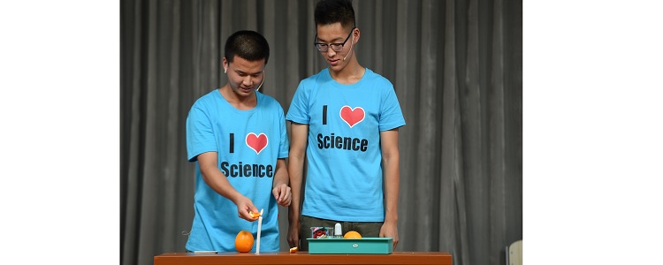 比赛过程的每个环节结束后,都穿插了有趣的科学实验,实验之后由同学或老师为大家讲解实验原理,过程不仅妙趣横生更让同学们感受到了科学的魅力。