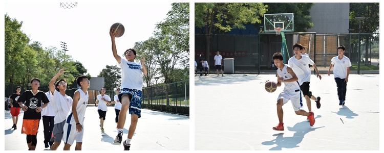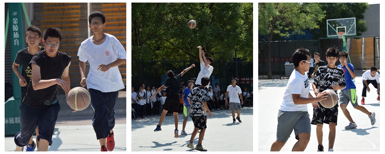 下午一点半,天气炎热暴晒丝毫不影响高一学生啦啦队加油助威的热情。随着篮球赛的开始,观众越来越多,气氛异常热烈。在起始阶段的两场比赛中,高1602班与高1601班兵不血刃,轻松战胜高1603班,两个班会师最后的决赛。