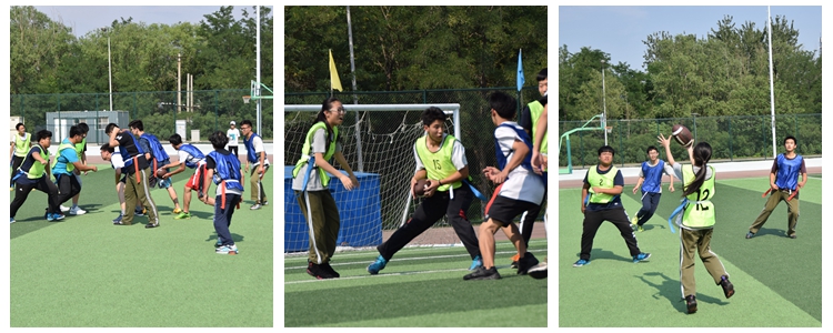 比赛一开始,高1503班严防死守,并在攻守交替后成功达阵,率先得分。上半场以大比分优势取得领先。但高1501班同学并没有放弃,稳扎稳打。在最后两分钟时把握住了机会,并在最后一刻绝杀,将比分定格在24∶22,最终,高1601班取得了比赛的最终胜利。