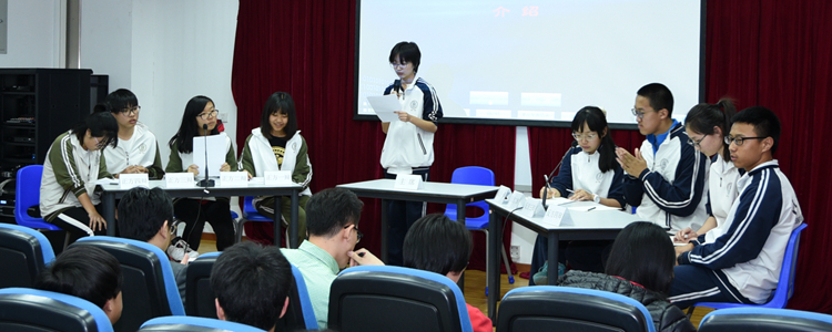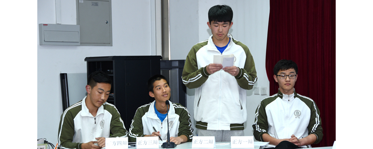2017年4月19日下午,皇冠体育奥森校区首届辩论赛决赛在阶梯教室举行。皇冠体育奥森、将台路校区执行校长朱建宏,语文老师姜健、王庆超,英语老师徐慧芬,文综组老师林一峥、伊国栋出任评委。本次辩论赛由校团委主办,语文组和文综组协办,全校师生200余人观看比赛。经历了一个月左右的前期培训、小组循环赛和复赛,最终由高一(1)班和高二(3)班来争夺季殿军,高二(1)班和高二(2)班争夺冠亚军。