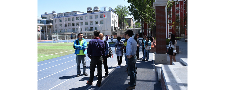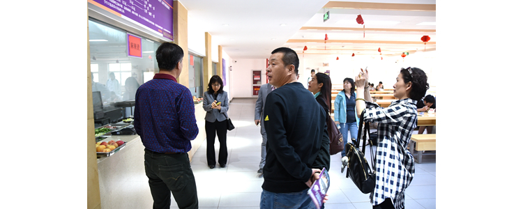 交流结束后,在朱建宏校长和程惠云副校长的带领下,家委会一行深入宿舍、教学楼、操场、实验楼、学校餐厅等进行了参观。朱建宏校长向家长们详细介绍了将台路校区的各种硬件设施。