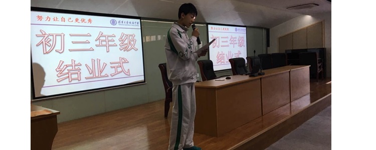 2017年1月14日上午,皇冠体育将台路校区初三年级在阶梯教室举办“2016-2017学年第一学期结业式”,初三年级全体学生和老师共计240多人参加,结业式由初三5班金可洋同学主持。