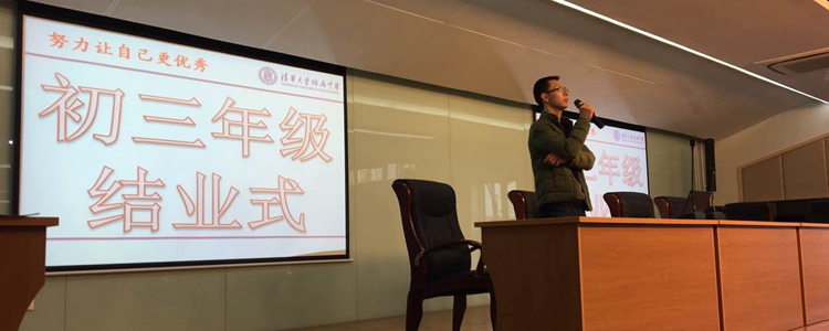 结业式上初三年级助理贺清灿老师首先发言,贺老师总结了这一学期初三年级在紧张的学习之余举办的丰富多彩的校园活动,主要包括参观“对话达芬奇——第四届艺术与科学国际作品展”、“歌颂祖国朗诵赛”、“参观中国美术馆”、“得语文者得天下”语文讲座、“高举一二九火炬、弘扬爱国精神”纪念活动、参观清华大学等。通过这些丰富多彩的校园活动,不仅展示了同学们的多才多艺,也让参与的同学从中收获了快乐与知识,提升了自身能力与素质。
