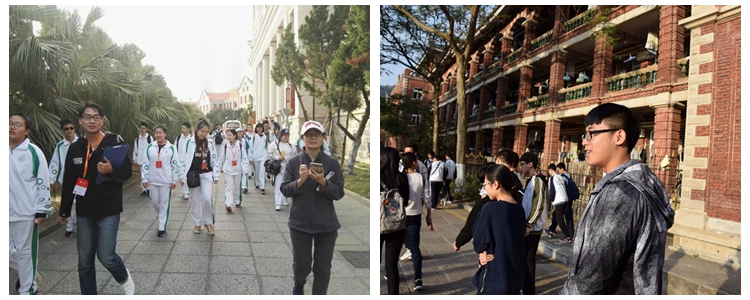 午后时分,同学们走进了厦门大学,领略校园里的优美景色,了解厦门大学“自强不息,止于至善”的校训及学校的发展历史。通过参观和游览,同学们感受到厦门大学自由自律的风气,品味到名校优秀的修养与德行。