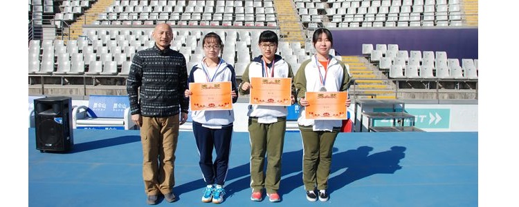 陈卫东副主任(左1)为女子单打获奖学生颁奖