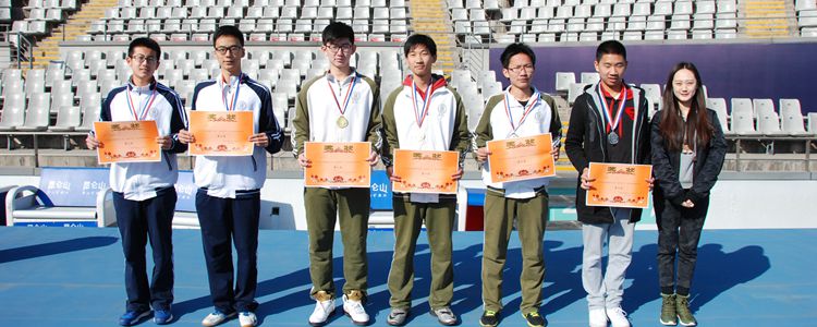 张姝敏副校长(左1)为男子单打获奖学生颁奖