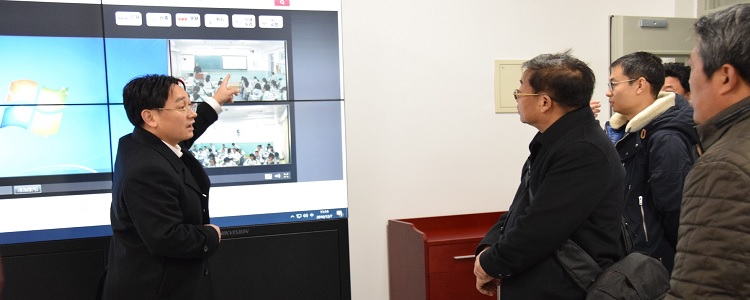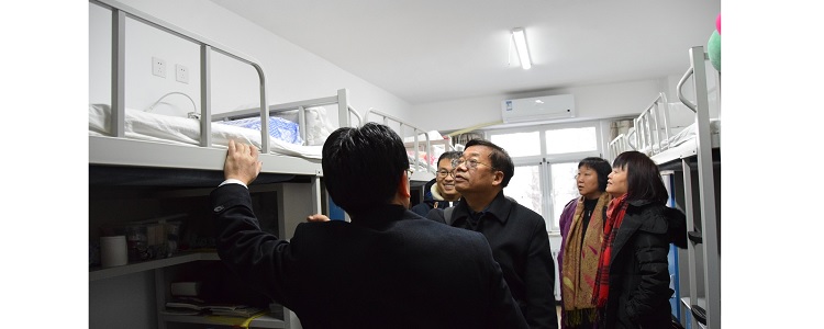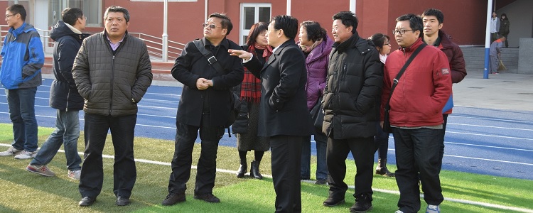 在朱建宏校长和程惠云副校长的带领下,解巨钊副校长一行深入操场、实验楼、教学楼、图书馆、食堂、宿舍等进行了实地查看。朱建宏校长向指导团各位领导和老师详细介绍了将台路校区的各种硬件设施。解巨钊副校长对校园安全设施情况、后勤服务现状、设备使用等进行了细致了解和工作指导。