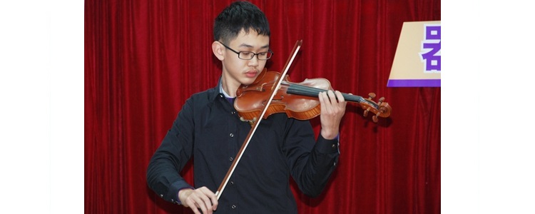 高一(3)班的闫璟怡同学带来长笛独奏《梁祝》,诉说着那段凄美动人的爱情故事; 高二(2)班的王宇恒同学带来小号独奏《拿波里舞曲》,明朗响亮的音色奏出优美而热烈的旋律,仿佛让观众身处热闹的舞蹈场面;高二(1)班的巴子天同学演奏小提琴独奏曲《沉思》,婉转抒情的曲调,体现了主人公内心情绪的跌宕起伏;高一(2)班赵百合同学的钢琴独奏《Summer》,指尖下弹奏出耳熟能详的旋律,使音乐会顿时充满了欢快的气氛。