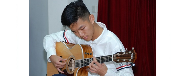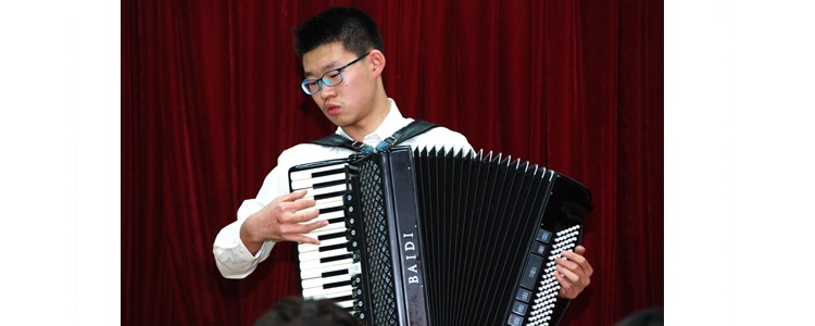 高一(3)班的刘瀚伦同学的吉他独奏曲《Landscape》和《Wings you are the hero》,用到泛音、点弦、拍弦等高级演奏技巧,畅快淋漓的表演将音乐会推向了热烈的氛围。高一(1)班杜宝泽同学的手风琴作品《春天》和《化妆舞》,用高超的演奏技巧,带我们领略了斯拉夫民族的独特韵味和拉丁美洲探戈的激情与奔放。