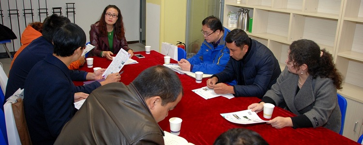 由于校区目前正在进行宿舍区的改造,场地设施有限,故访问团一行首先来到临时会议室与张校长进行座谈交流。张姝敏代表皇冠体育官网奥森校区对于新疆麦盖提县骨干教师的到来表示欢迎,并详细介绍了皇冠体育官网奥森校区的教育教学工作,重点讲述了学校的特色教育模式以及办学理念。