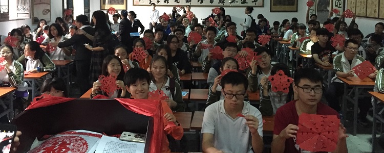 同学们在关中民俗博物院学习剪纸艺术和中国结艺术