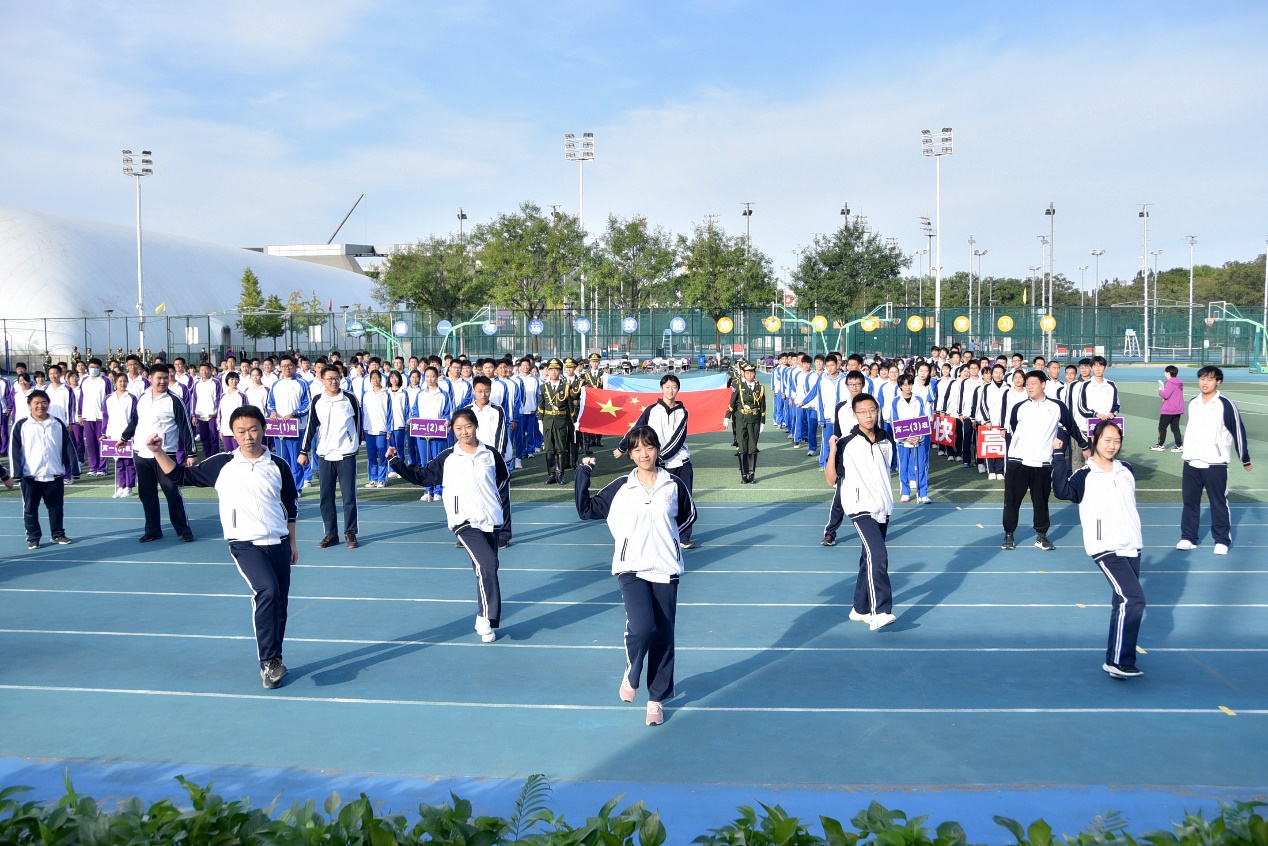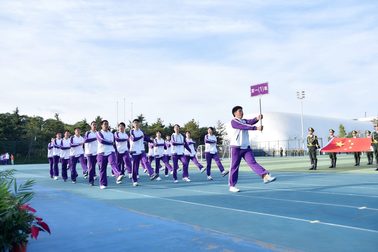 早晨8点,运动会正式拉开帷幕。踏着激昂的《运动员进行曲》节拍,庄严的国旗方阵和校旗方阵先行入场。紧接着,高一、高二年级各班代表队精神抖擞、斗志昂扬,用最饱满的状态为为期半个月的军训交上完美的答卷。高三年级别出心裁,把运动场变成了舞台,用精彩的表演展现了青春的朝气。教职工方阵个个昂首阔步、英姿焕发,他们别样的风采极大地鼓舞了全场学生。