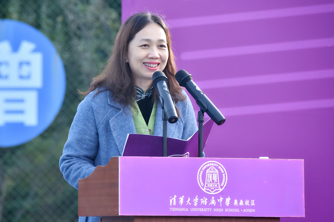 升旗仪式后,吕宏娟致开幕词,以“体教融合,全面育人”为切入点表示,学校本着“教会,多练,常赛”的原则,创造性地开设体育课程,包括多个专项课程,综合课,社团课,给同学们提供了选择最适合自己的体育运动项目机会,希望大家认真锻炼,都能在学校快乐、和谐、全面、健康地发展,努力传承“无体育,不清华”的精神。