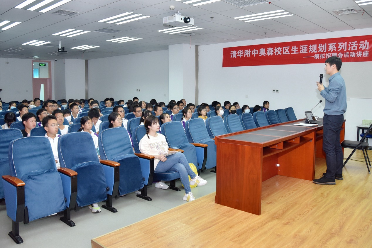 10月13日下午,皇冠体育奥森校区邀请到《中学时事报》编辑部主任栾轲在阶梯教室为高一年级学生开展“模拟招聘会行前培训”讲座。讲座中详细介绍了生涯选择的维度、面试STAR原则等专业知识,同时为学生做了求职应聘时简历书写与着装礼仪的专业培训。