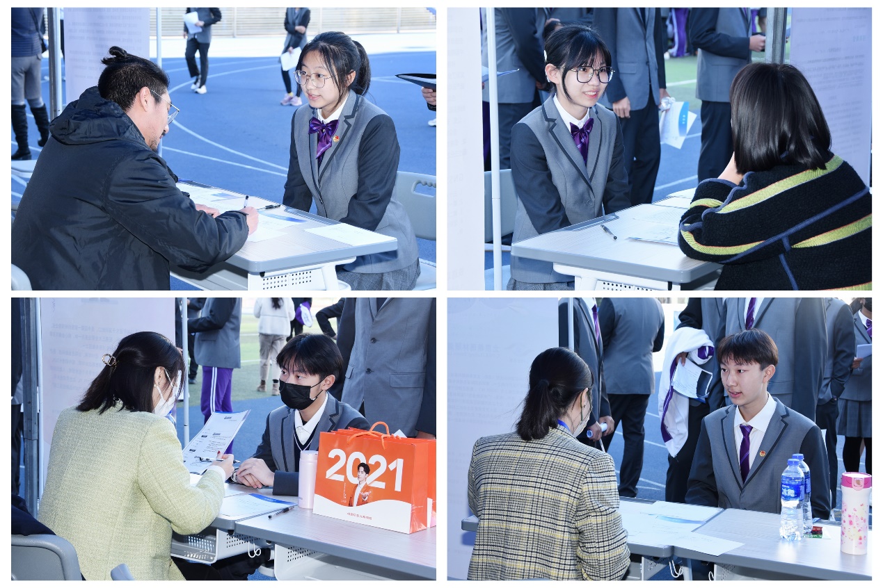 10月21日下午,“正青春 耀未来”模拟招聘会在学校操场举办。招聘会云集了教育、科技、医疗、艺术等领域20家知名企事业单位,共计42个岗位面向同学们开放。同学们身着正装、携带求职简历和推荐信,按照岗位应聘流程依次接受面试。