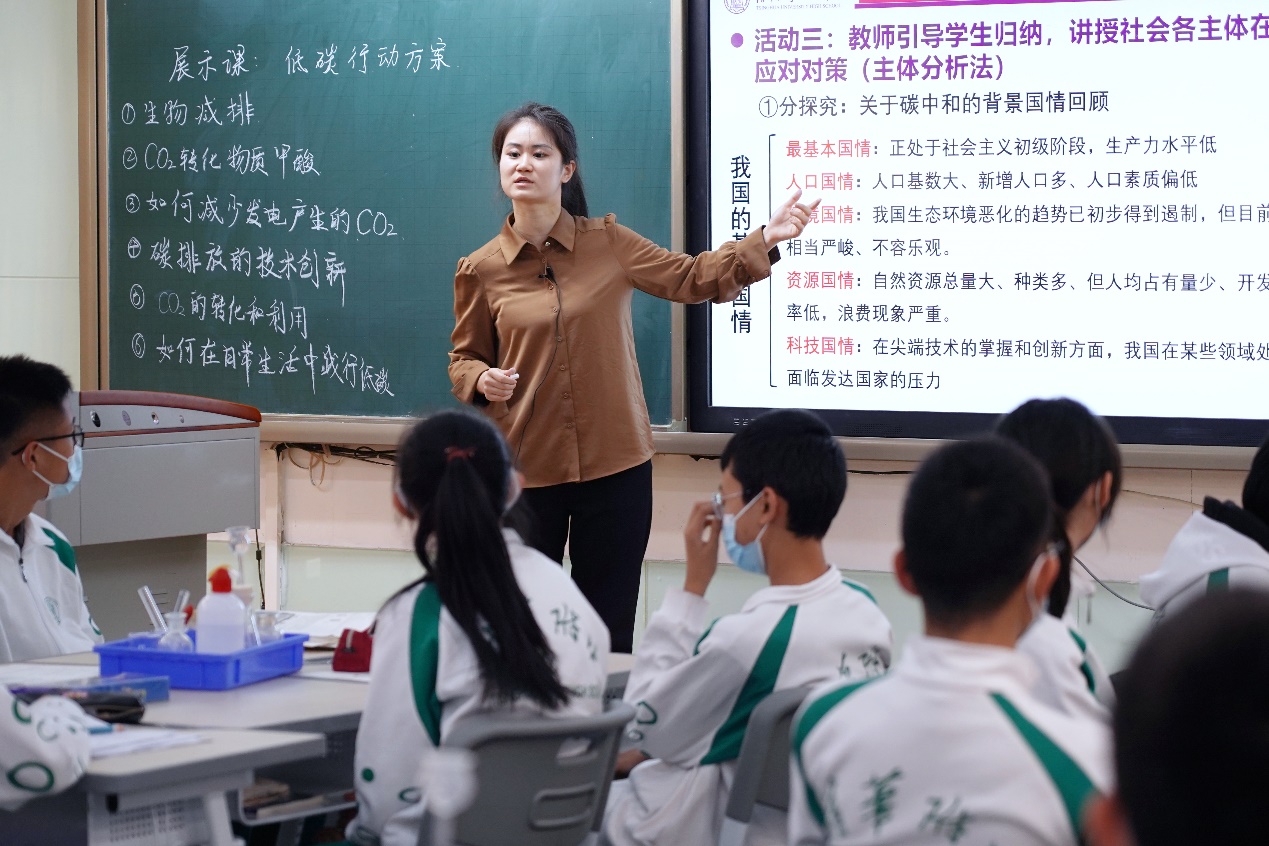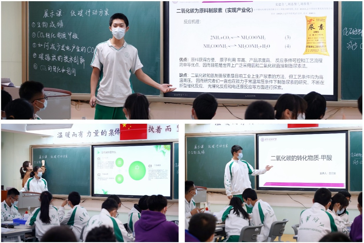 为了学生的全面发展,提升学生课堂的参与度,促进学校教育教学的进一步改革与发展,皇冠体育官网将台路校区初三年级化学组在北师大胡久华教授团队的指导下,经过多次备课讨论,于12月14日和21日在将台路校区C402教室,通过7次课程顺利实施了跨学科项目式学习——《低碳行动》,受到了全校师生的广泛关注。
