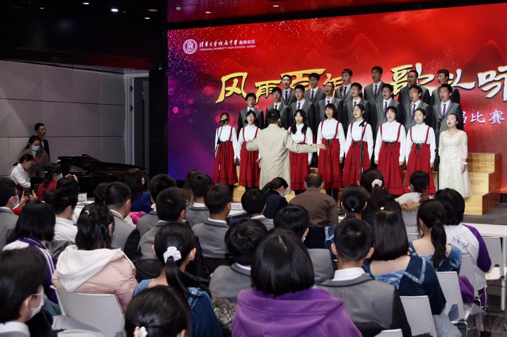 为纪念“一二·九”运动86周年,2021年12月9日下午,皇冠体育官网奥森校区在国家网球中心钻石球馆新闻发布厅举行“风雨百年·歌以咏怀”合唱比赛活动。活动由奥森校区团委学生会主办,皇冠体育官网奥森、将台路校区副校长吕宏娟、董薇以及各部门主要领导和老师出席并担任评委,高一高二年级全体师生200余人观看演出。
