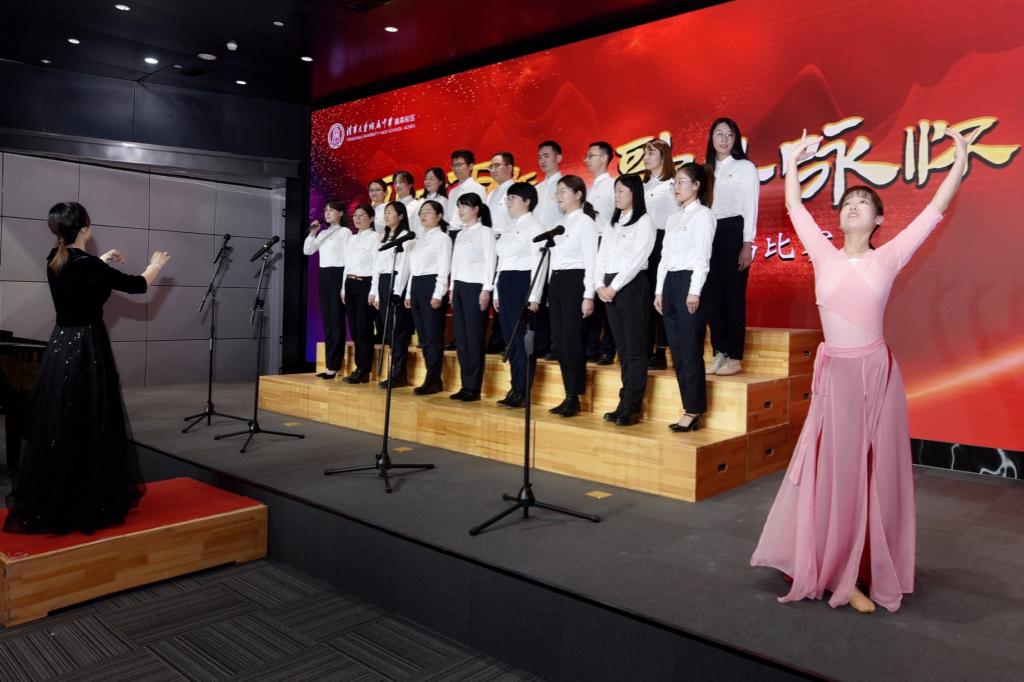 董薇副校长祝贺各班演出取得了圆满成功,称赞同学们的演唱给她带来了惊喜、快乐和欣慰,衷心感谢为策划、筹备、组织本次活动而辛苦付出的学生干部、德育老师、班主任及后勤工作人员,更希望同学们以史明志,传承爱国精神,弘扬家国情怀。
