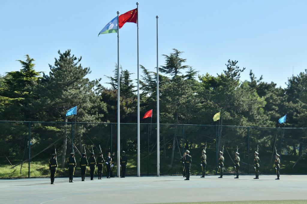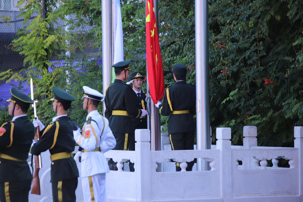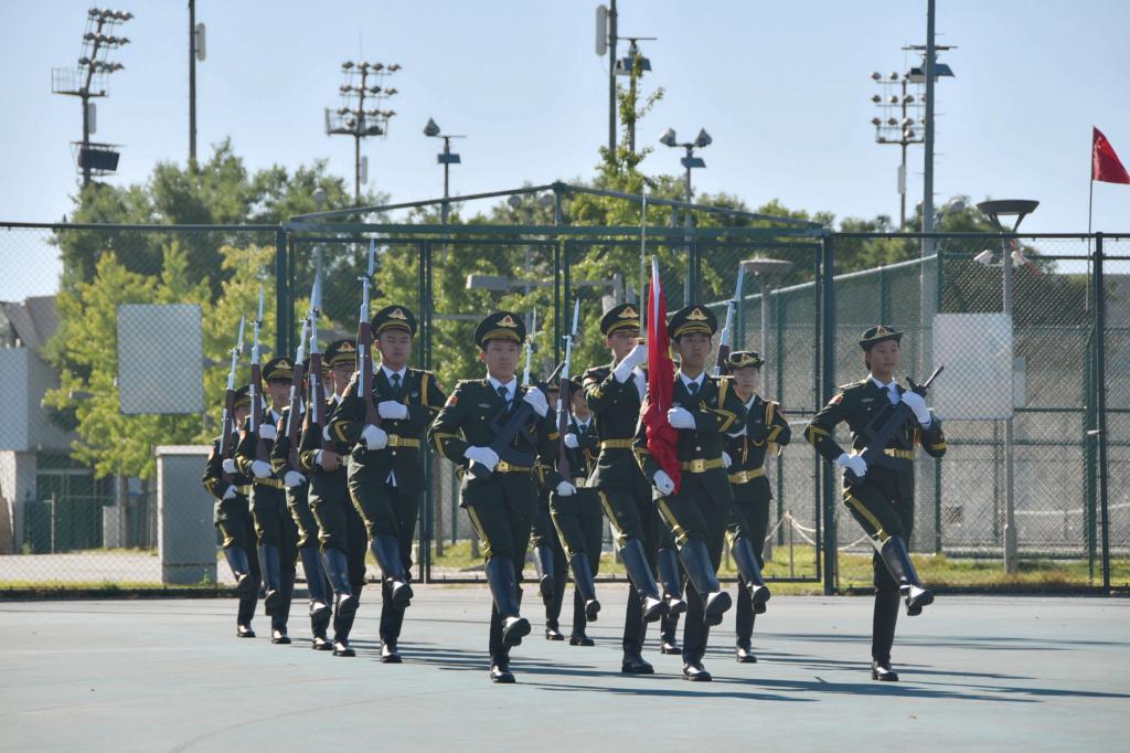 典礼伊始,庄严的国歌由校管乐团奏响,五星红旗冉冉升起,全体师生奏唱国歌。