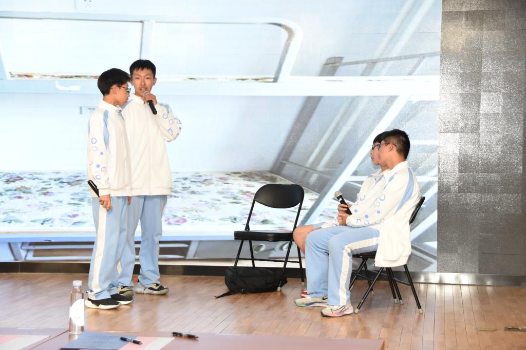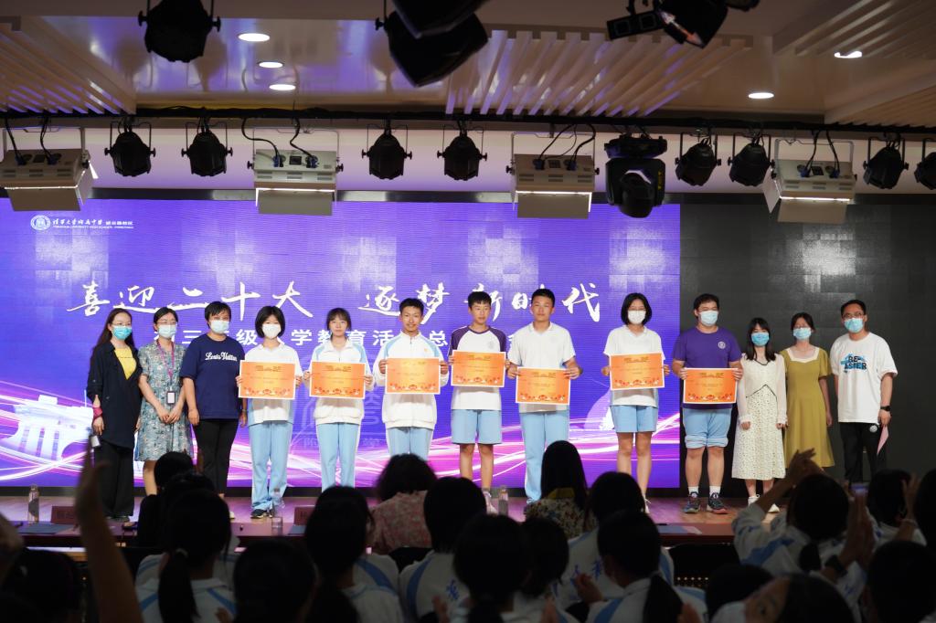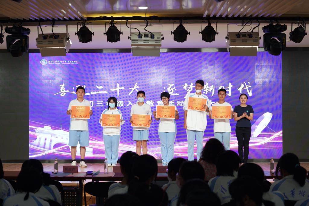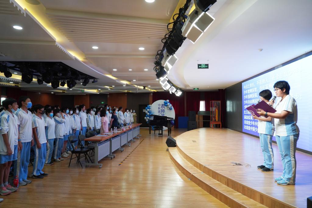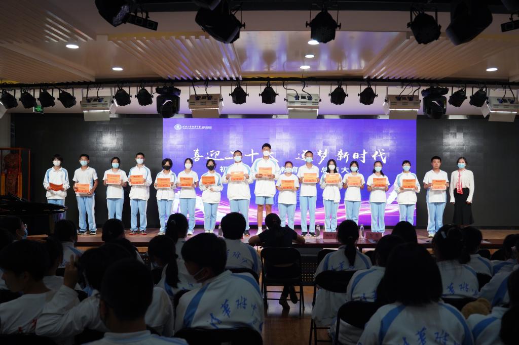 9月9日,初三年级入学教育活动总结大会在将台路校区阶梯教室召开。副校长董薇、资源保障中心副主任杨开宇、党办校办副主任李墨出席会议现场。会议以新生回顾视频展开,依次以班级为单位表演行为规范情景剧,展现出入学教育以来新生在行为规范方面的收获与成长。