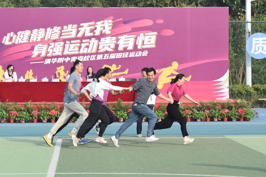 学生比赛结束后,教职工们也加入到运动会比拼中,操场上再次燃起紧张激烈的氛围,直到比赛在学生们经久不息的呐喊声中结束。