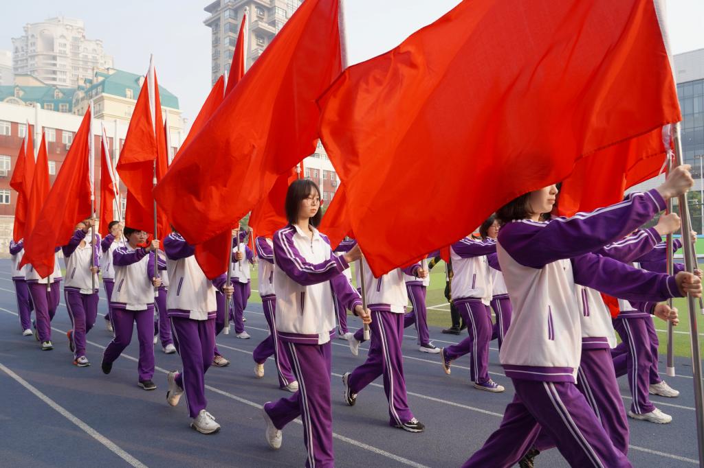 开幕式伊始,庄严有序的红旗方阵、国旗方阵、校旗方阵及各班运动员方阵陆续入场。运动员进行曲激昂雄壮,各方阵学生步伐铿锵,用挺拔的身姿和嘹亮的口号展现着同学们的澎湃热情和必胜信念。