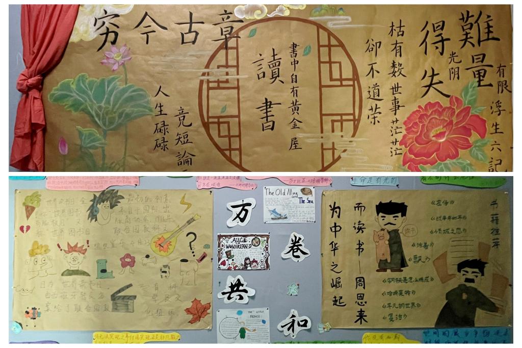 读书节伊始,奥森校区各班开展了读书节主题板报设计活动,各班学生用文字和绘画宣传读书的意义,号召同学们沉浸在书籍的世界里。