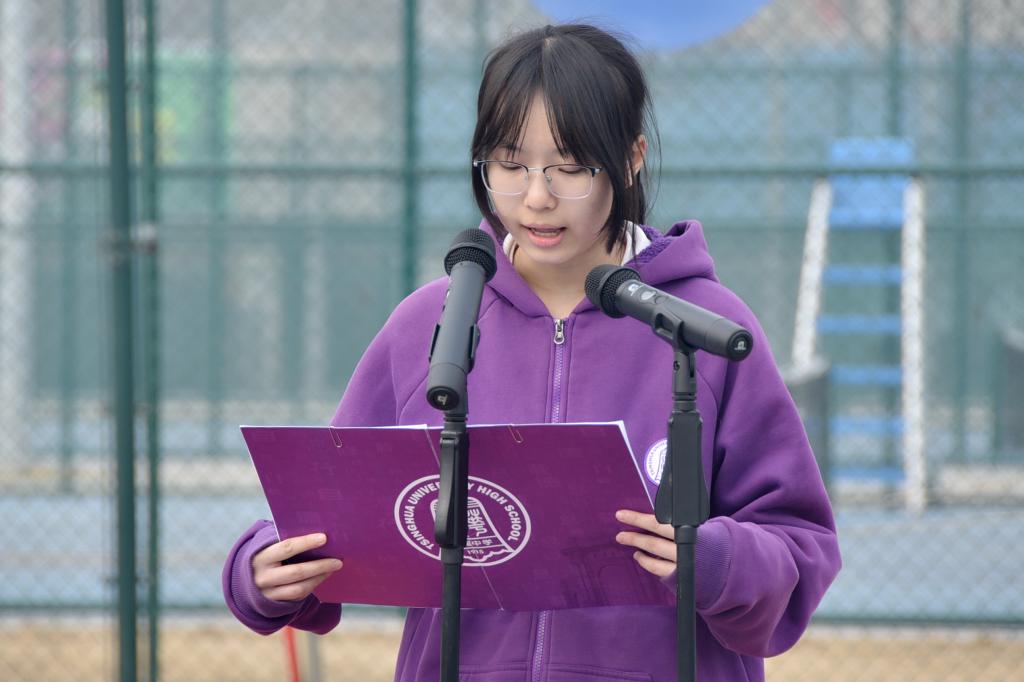 奥森校区高二(1)班洪静熹同学做“春风拂面书香来”主题演讲