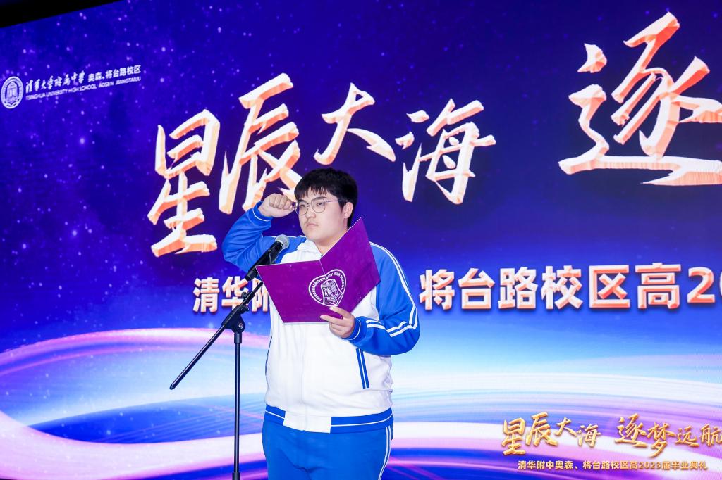执行校长朱建宏向毕业生深情寄语,希望同学们做一个真诚善良的人,牢记“无体育 不清华”的精神,勉励同学们秉承母校的优良传统,勇敢面对未来,从容应对挑战,在人生的舞台上收获辉煌的成就。