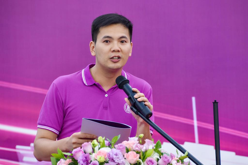 将台路校区初三8班王泓岳代表新生发言。他以流利的法语和英语完成开场白后,表达了对这所注重特色教育、特长培养和综合素质提升的独特学府的无限憧憬,立志成长为一名具有爱国情怀、国际抱负、人文感召的中国外交官,努力成为为全面建设社会主义现代化国家做出贡献的杰出人才。