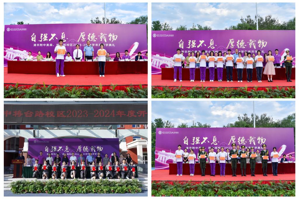 副校长张姝敏、董薇、吕宏娟分别宣读了奥森、将台路校区2022-2023学年度表彰名单。学校领导干部、嘉宾为海淀区三好学生、校级先进班集体、校级三好学生及优秀学生干部,以及各项文体竞赛的获奖者颁发荣誉证书。