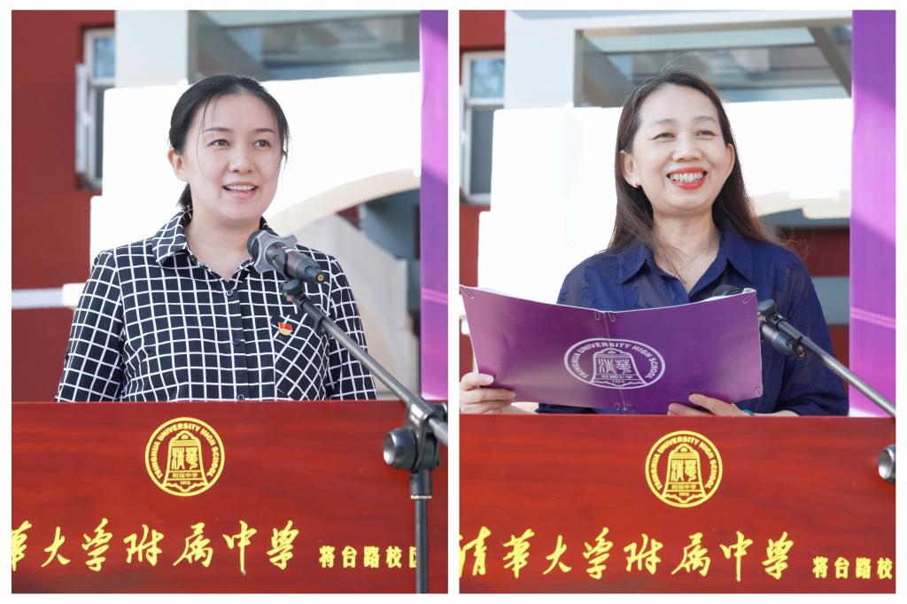 董薇副校长(左)、吕宏娟副校长(右)分别宣读将台路校区表彰名单