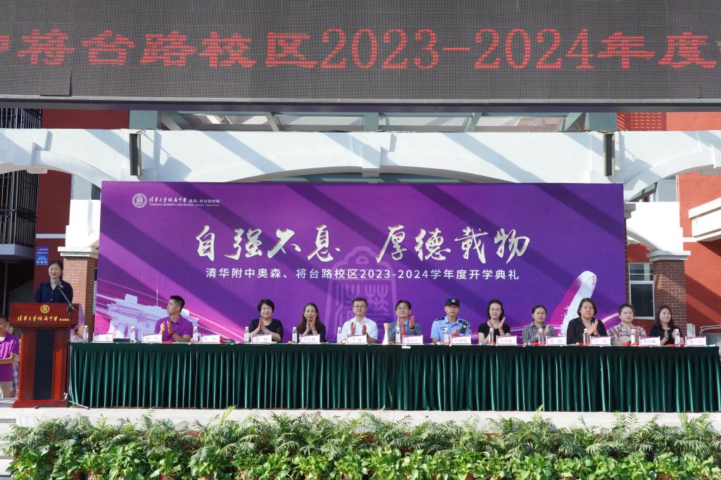 8月31日下午及9月1日上午,皇冠体育奥森、将台路校区分别在两校区操场举行2023—2024学年度开学典礼。朝阳区将台地区办事处主任李勃、将台地区派出所副所长吕亚伟受邀出席将台路校区开学典礼。奥运村社区派出所副所长聂子栋、奥运村街道社区建设办公室副科长魏悦爽受邀参加奥森校区开学典礼。皇冠体育奥森、将台路校区执行校长朱建宏,副校长张姝敏、吕宏娟、董薇及两校区党政班子成员出席两校区开学典礼。两校区全体师生约1700人参加典礼。