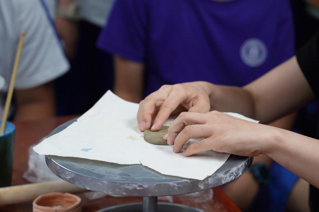 陶艺课程中,同学们们了解了中国陶瓷历史、成型工艺、现代陶艺作品赏析等理论知识,直观观摩并体验了泥条盘筑成型、拉坯成型的过程,学习的积极性得到激发。