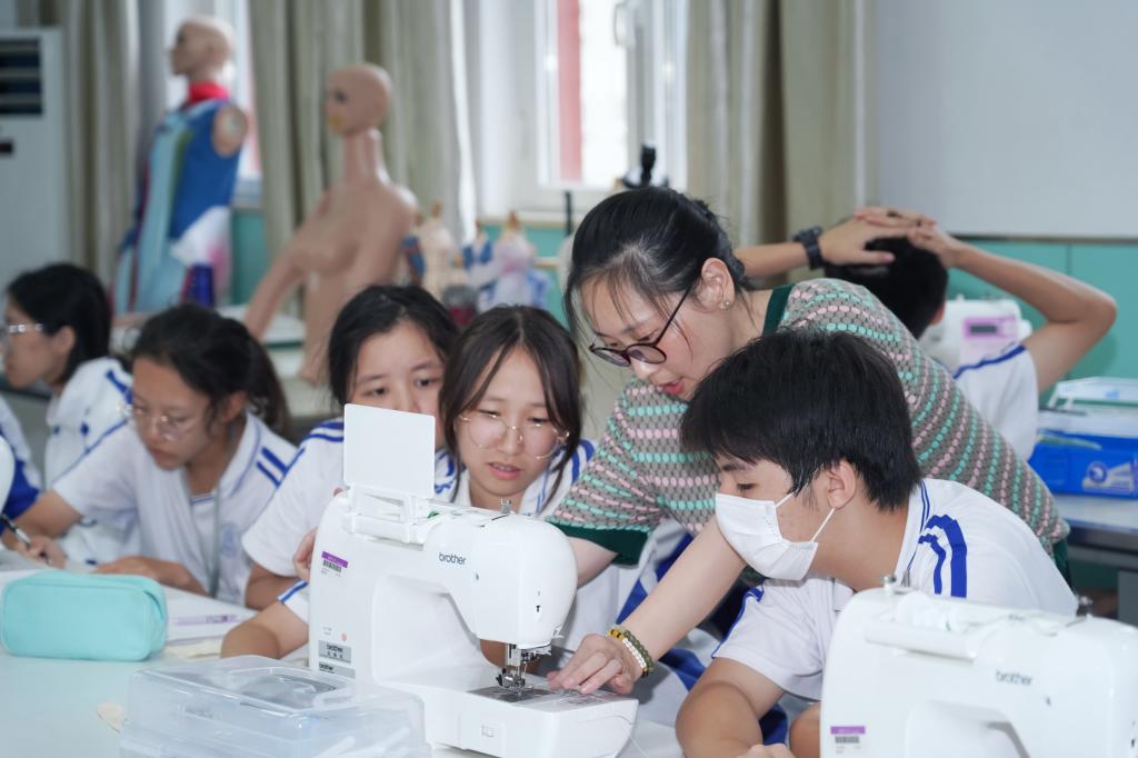 “在服装剪裁与制作的课堂上,同学们了解了服装在人类社会发展中承担的作用,观摩了成品样衣,学习了缝纫工具及缝纫机的使用方法。同学们表现活跃,达到了较好的学习效果。